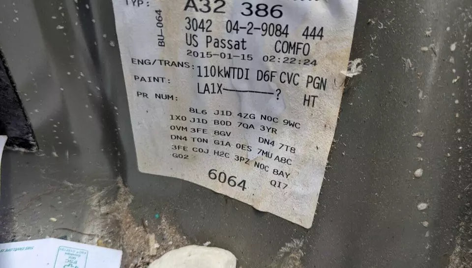 ** NO RESIDENTIAL DELIVERY**** DONOR VEHICLE IS A 2015 VOLKSWAGEN PASSAT AT, 2.0L, (transmission ID PGN), IT FITS 2015 VOLKSWAGEN PASSAT AT, 2.0L, (transmission ID PGN).